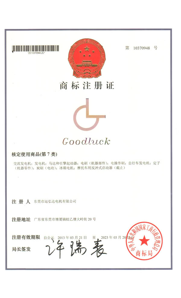 • 運弘達商標注冊證